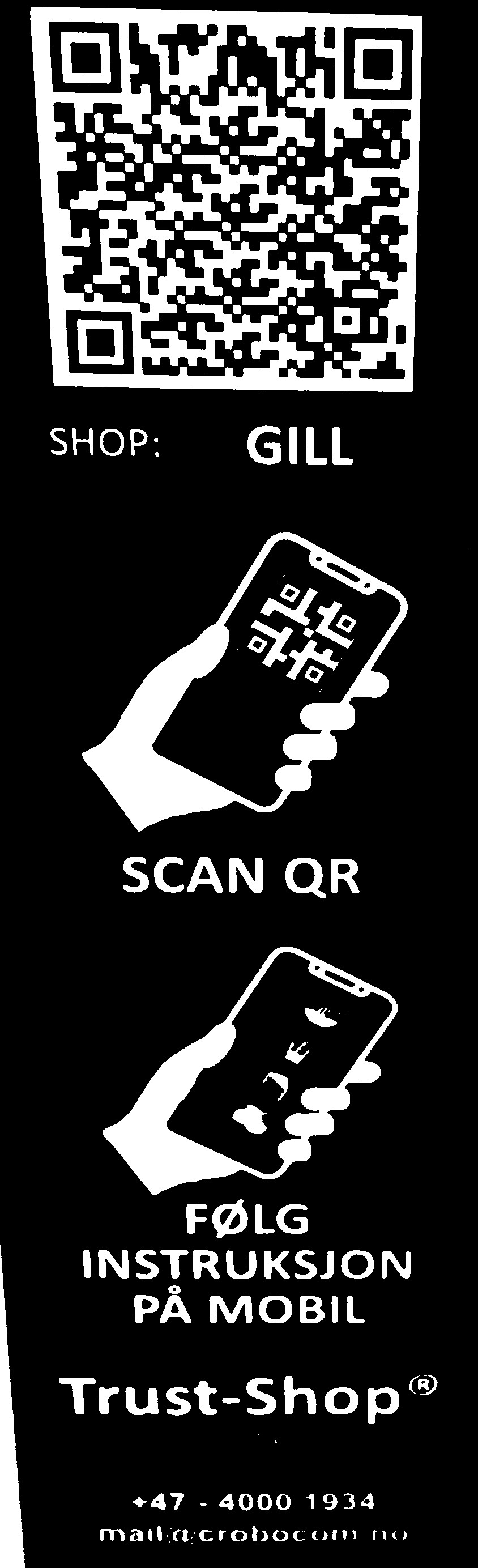 Som et eksempel under er navnet GILL slik det er skrevet på QR-kode merkingen for skapet.